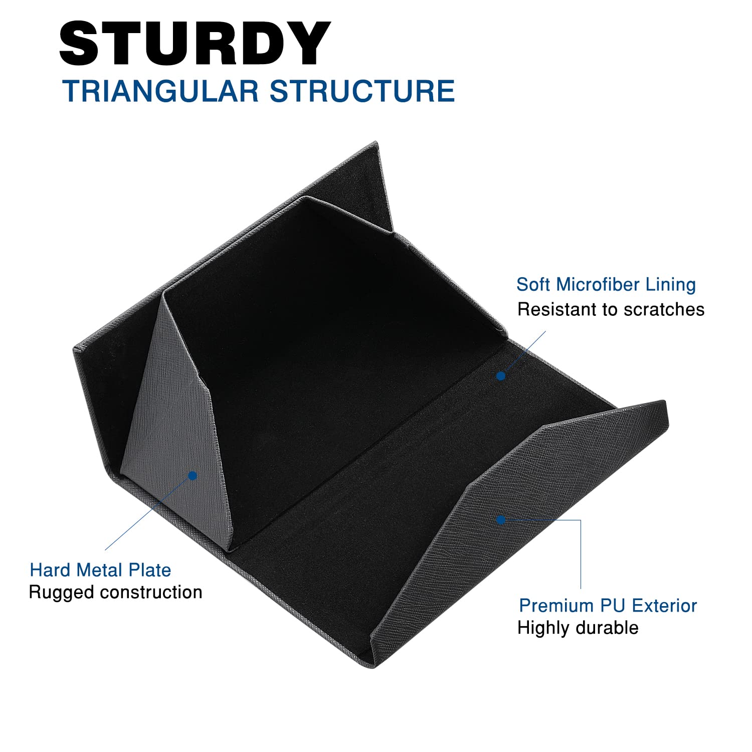 Triangle Eyewear Case: Sturdy triangle form to protect your glasses and provide more space for larger frames. Perfect for sunglasses, reading glasses, presbyopic glasses and other glasses.