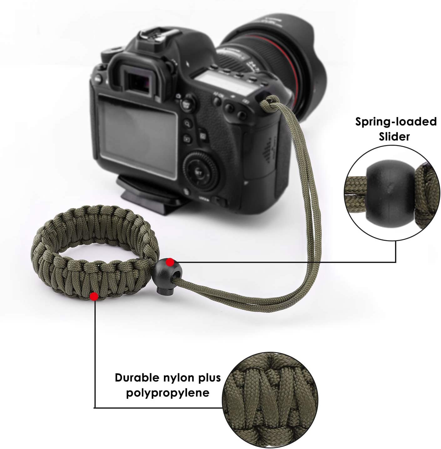 - Adjustable Length - Easily adjust to fit your wrist. Securely hold your cameras, binoculars and other stuff from dropping.