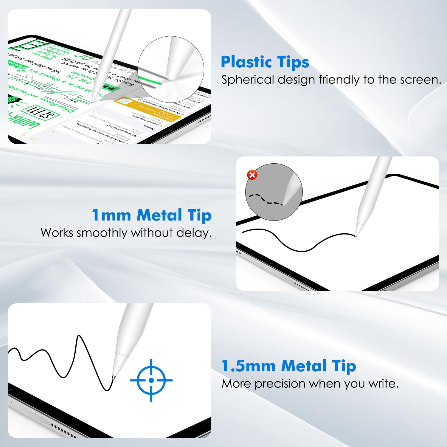- 【Tips for Apple Pencil】Designed for Apple Pencil 1st Generation, Apple Pencil 2nd Generation, Apple Pencil USB-C and Apple Pencil Pro, with 2 plastic tips and 2 metal tips, with different uses and writing effects for different scenarios. Note: Apple Pencil is not included.