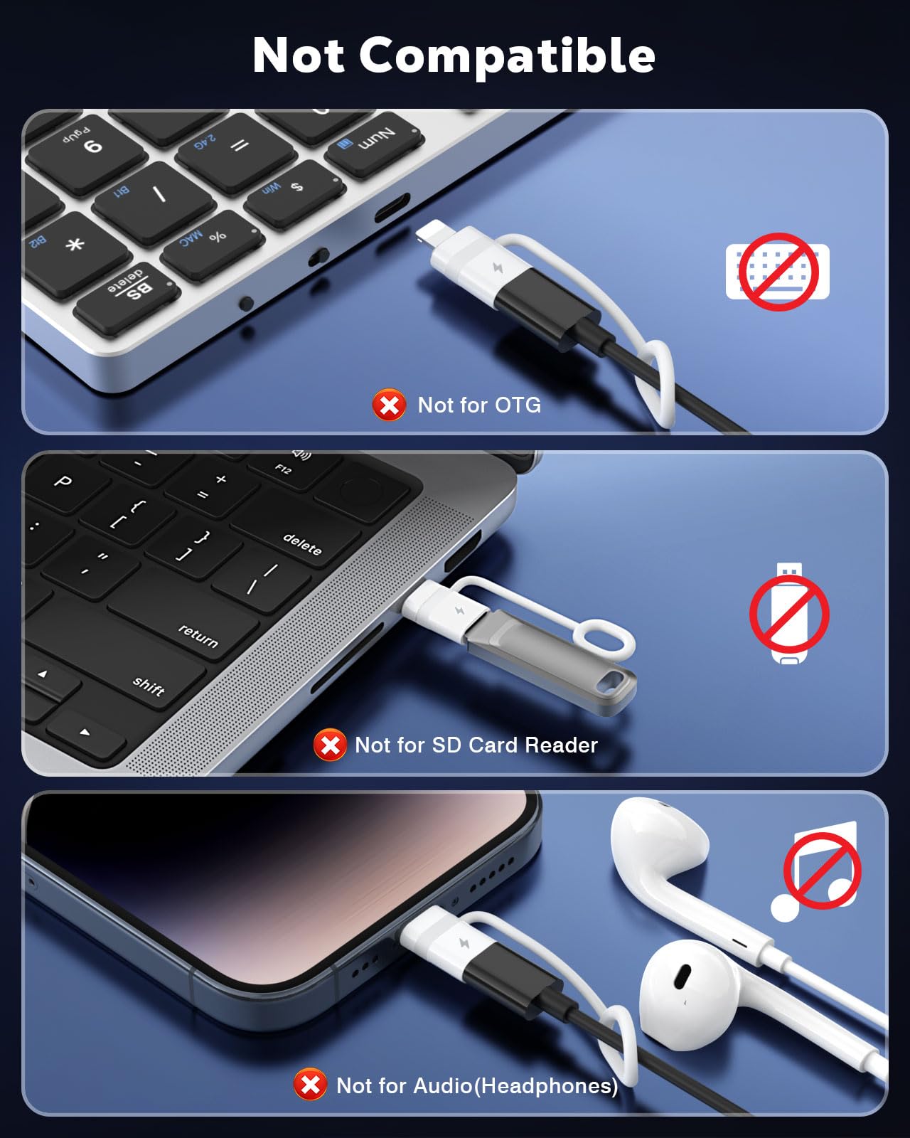 - User-friendly Anti-lost Design: This USB-C to iPhone adapter comes with a one-piece silicone loss-proof loop that easily attaches to your most-used cables to prevent loss and make it easy to store and carry. Compact and lightweight, fits in your pocket or bag, an ideal adapter or replacement for travel, home and office use.